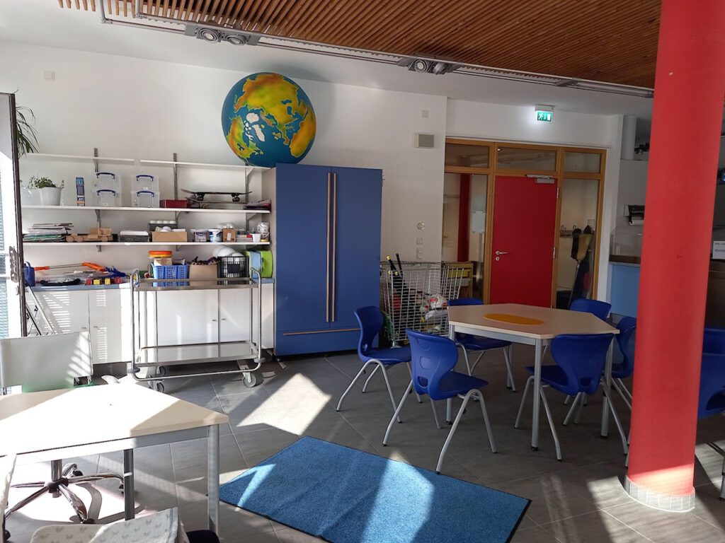 Seit 2021/22 ist die Mensa für den offenen Ganztag der zentrale Ort, an dem sich die Kinder nach dem Vormittagsunterricht treffen können.