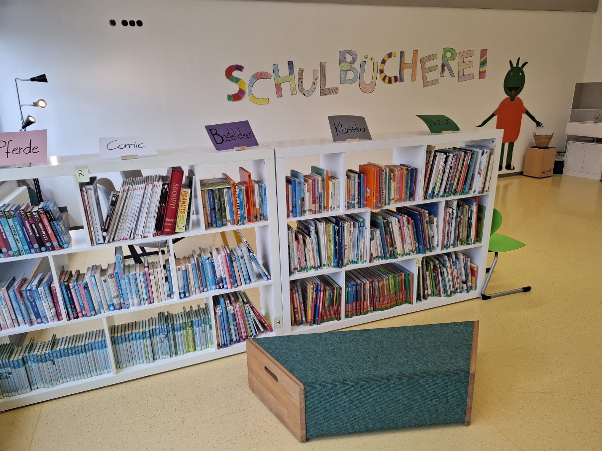 Unsere Schulbücherei hat ein neues Zuhause! Nach einem erfolgreichen Umzug in die neuen Räumlichkeiten erstrahlt die Bücherei nun in frischem Glanz und bietet unseren Schülern noch mehr Freude am Lesen. Besonderer Dank gilt der Klasse 4c, die maßgeblich an der Gestaltung und Einrichtung der neuen Bücherei beteiligt war. Mit viel Engagement, Kreativität und Ideenreichtum haben die Kinder Figuren gestaltet, Regale eingeräumt, Bücher sortiert und Themenbereiche übersichtlich gestaltet. So können sich unsere kleinen Leser nun noch leichter zurechtfinden und schnell die passenden Bücher zu ihren Lieblingsthemen entdecken.